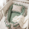 Sa teinte vert sauge apaisante, sublimée par de jolis volants en tissu fleuri, apporte une touche poétique et raffinée à la chambre. Le petit oreiller assorti, à l’imprimé délicat, complète parfaitement l’ensemble pour un rendu harmonieux et élégant.